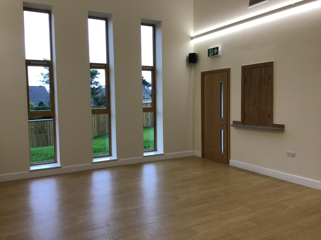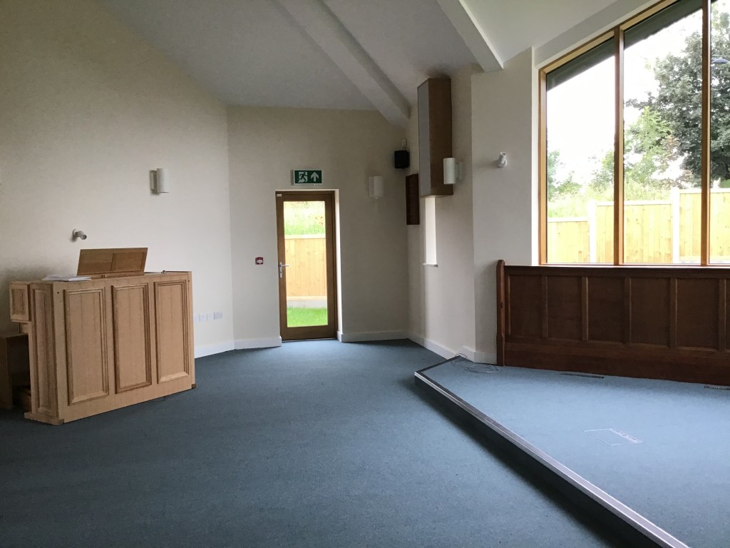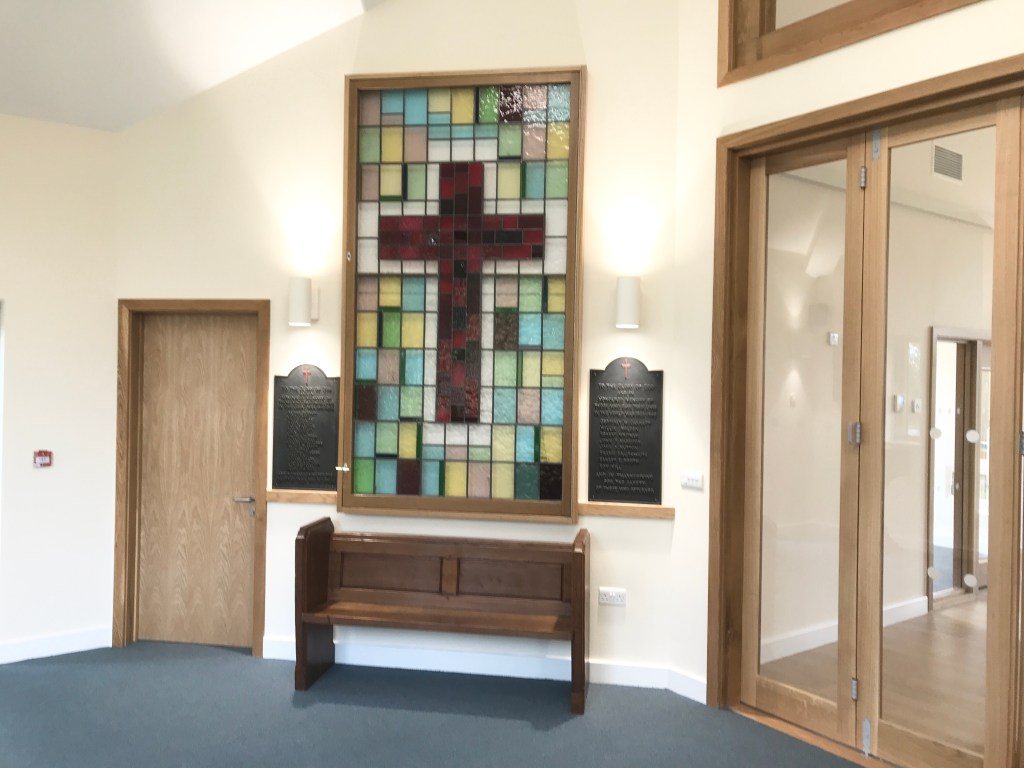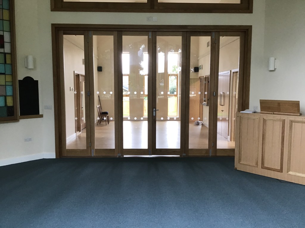 The ChapelBack – with folding doors to hallThe Chapel from the hallStained glass panel from St John’s URC, FagleyMeeting RoomKitchen