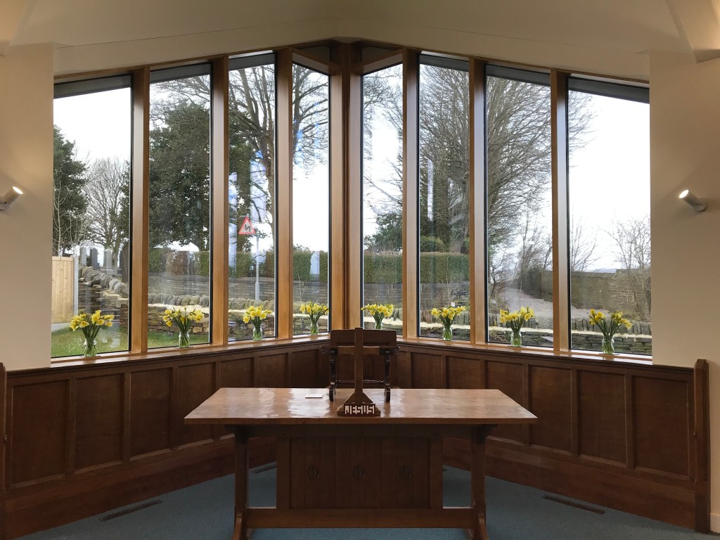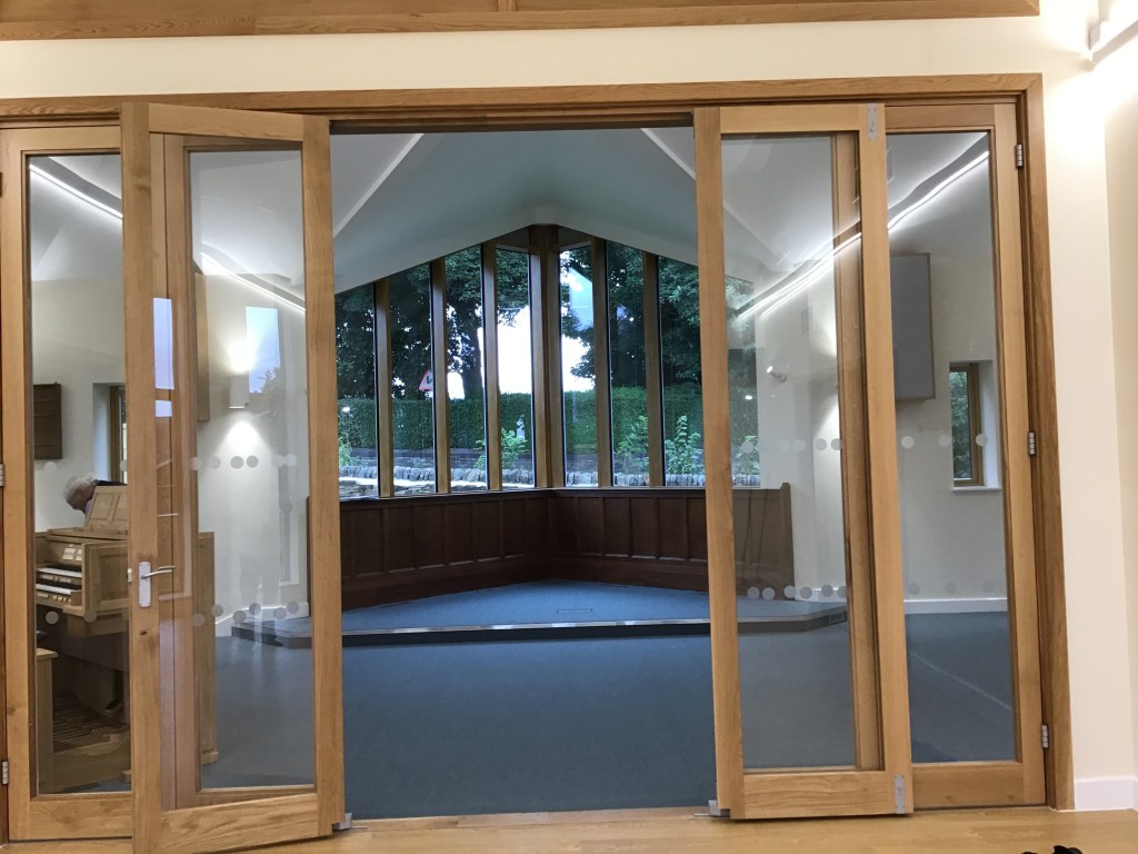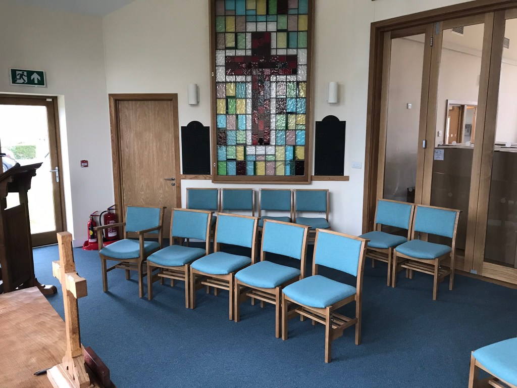The ChapelFront – Robert Thompson’s Mouseman®️ Panels from our previous church Multipurpose HallRefurbished Mouseman®️ Furniture New Makin OrganKitchen